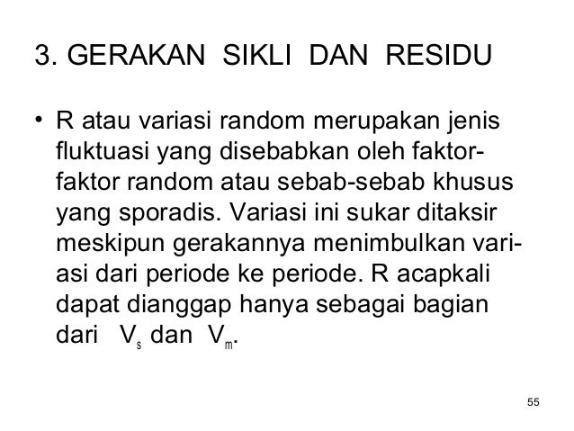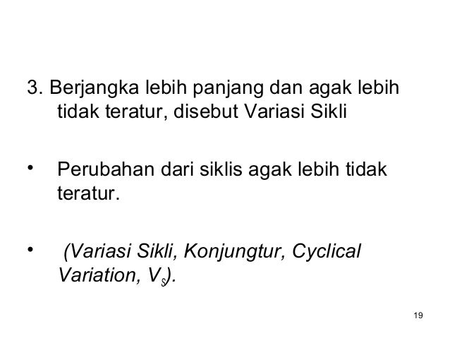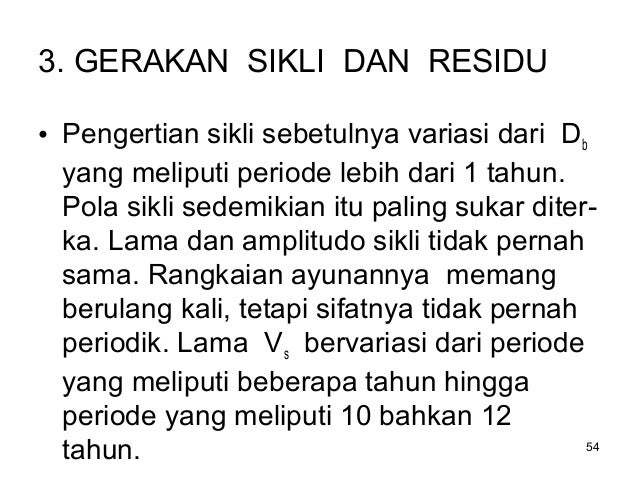 Variasi Siklus, yaitu ayunan trend yang berjangka lebih panjang dan agak lebih teratur.