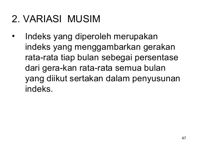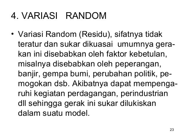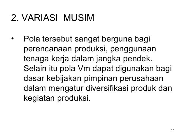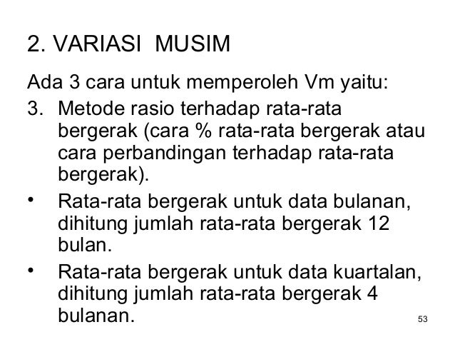 Variasi Musim, yaitu ayunan sekitar trend yang bersifat musiman serta kurang lebih